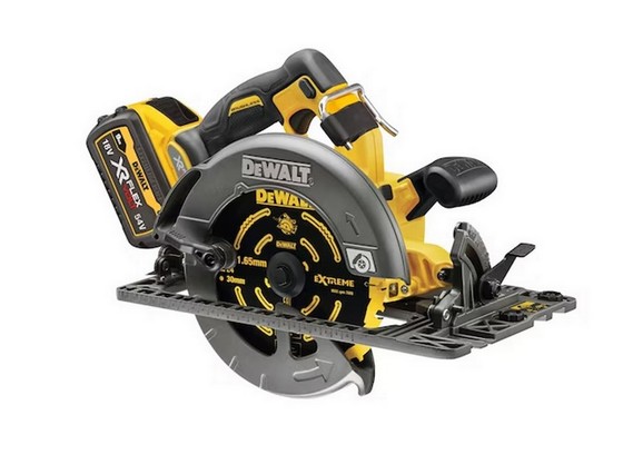 XR FLEXVOLT JUST GOT BETTER. The DCS579 54V Circular Saw has up to 47% more power* when used with a 9Ah battery than the DCS576. With a no-load speed of 5800 rpm, this saw delivers the power of a corded circular saw with the portability and convenience of cordless. The base of the saw is compatible with all DEWALT plunge saw rails for increased accuracy. *Products tested under controlled conditions to measure power. Power increase compares peak power of DCS579 with DCB547 and DCS576 with DCB546.