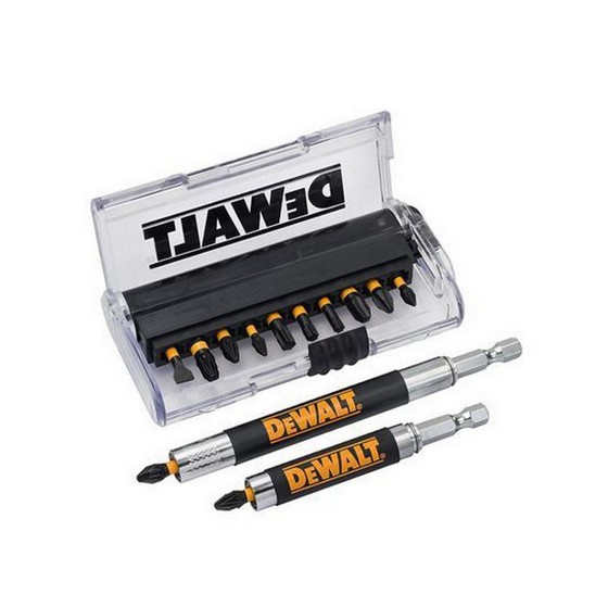Dewalt 14 piece screwdriver bit set includes 2 x bit holders and 12 x impact rated screwdriver bits. Supplied in storage case. More