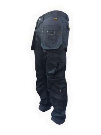 The DEWALT Thurlston Black Trousers combine a slimmer fit with a 4-way stretch fabric to create a work trouser that is built for comfort and versatility. The slimmer fit reduces drag, whilst the stretch increases movement. CORDURA® knee pad pockets and a reinforced hem provide increased durability. Holster pockets provide easy access to tools and the cargo side pockets provide additional storage. There is also a padded phone pocket that provides increased protection for your mobile device. All these elements combine to create a forward thinking technical trouser