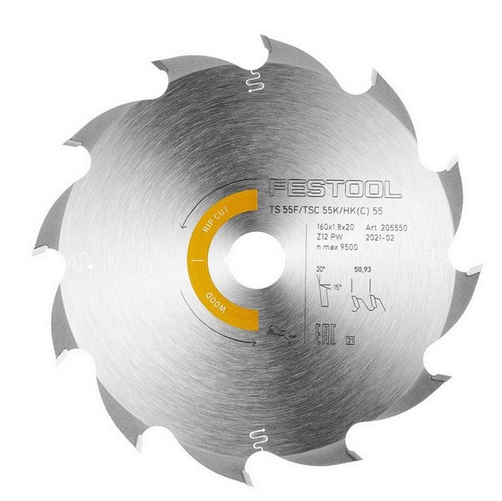 The Festool 205550 HW 160x1,8x20 PW12 is a 12 tooth wood blade for rapid working with low application of power, especially for rip cuts in solid wood. Suitable for hardwood and softwood. It is the ideal solution for precise, efficient work when used together with Festool TS 55 T and TSC 55 K plunge-cut saws, as well as with the HK 55 and HKC 55 – for precise, efficient work.