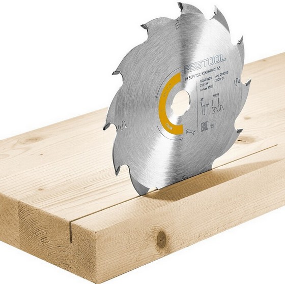The Festool 205550 is a 12 tooth wood blade for rapid working with low application of power, especially for rip cuts in solid hard/soft woods.