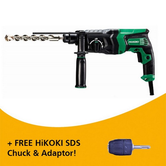 HIKOKI DH26 PX2 2KG 3 MODE SDS HAMMER DRILL 240V + FREE SDS CHUCK & ADAPTOR
