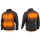 - Heat on demand - sewn in carbon fibre heating wires, distribute heat to core body areas and to the front pockets