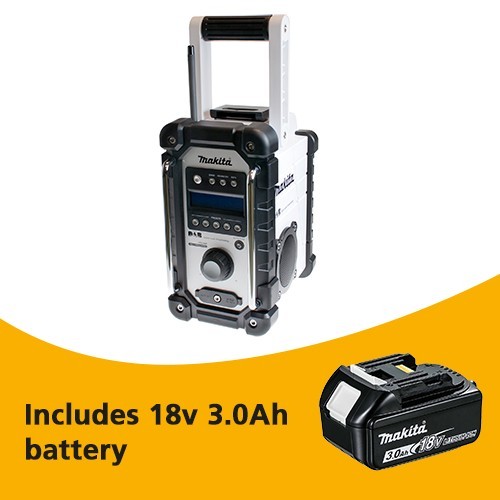 The radio will work from the mains with the supplied adaptor but you can also plug in your Makita power tool batteries to listen. This model accepts virtually any battery manufactured by Makita from 7.2 up to 18 volts. You can also plug in your ipod or MP3 player and listen to it using the aux plug socket.- Rugged and robust DAB radio