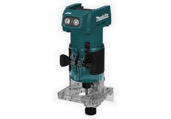 • The Makita DRT52Z 18V LXT Brushless Laminate Trimmer is a compact and versatile tool suitable for a wide range of applications. This user-friendly trimmer, equipped with an easily accessible power control switch, is perfect for milling various laminated wood types and veneer wood, making it ideal for tasks such as working with door hinges, engraving in wood, and rounding off edges.