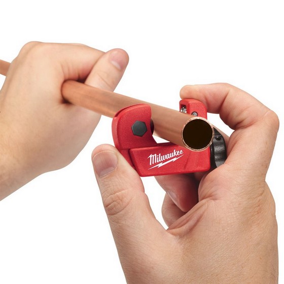 Milwaukee mini tube cutter with compact design to cut pipes in restricted areas.