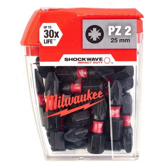 MILWAUKEE 4932472041 SHOCKWAVE POZI SCREWDRIVER BITS PZ2X25MM (PACK OF 25)