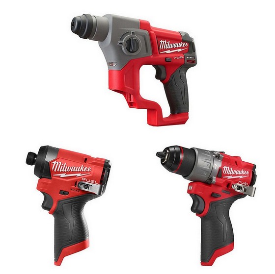 - 1 x Milwaukee M12CH Compact SDS Rotary Hammer Drill: A brushless compact rotary hammer offering low vibration and the ability to drill over 60 holes per battery charge, designed for optimal power-to-weight ratio.