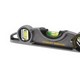 The STANLEY® FatMax® Pro Torpedo Level has a a die-cast aluminum body for long lasting durability. The solid block vial provides accuracy of 0.5mm/m (0.0005in/in), and a 180-degree rotating vial is designed to duplicate angles. It includes a magnified center vial for improved visibility.