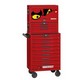 The TengTools 26" PRO35™ Mega Master tool kit TKS26R1033T in matte red finish is a comprehensive and versatile 1033-piece collection compiled for professionals in industrial and mechanical fields. This 16-drawer mobile stacked tool storage is built for durability and a great asset in environments where tasks include maintenance and complex assembly. It consists of three storage units: a 9-drawer roller cabinet, a 3-drawer tool chest and a 4-drawer tool chest. Each unit is constructed from high-quality heavy gauge steel and features drawers with a loading capacity between 30 to 40 kg, all equipped with ball bearing slides. To reduce wear and tear on both drawers and tools, all drawers are fitted with noise-reducing EVA-mats. Each unit has undergone a 5-step phosphate-free rust prevention process. The roller cabinet is equipped with 5" heavy duty castors, two braked swivel castors and two fixed, providing both easy manoeuvrability and stability. The dimensions are 680 mm in width, 460 mm in depth and a total height of 1570 mm with castors mounted. To ensure that the tools are stored safely, each unit is equipped with a 3-digit combination lock. One of the main features of this Mega Master tool kit is the integration of the TengTools Tool Control System, which makes tool management well organised and efficient. Each toolset within this comprehensive collection is methodically placed in a dedicated module. This way of organising the tools allows for a customisable and dynamic configuration of the toolkit, while making it easy to detect if a tool has been lost or forgotten in a project. The tool kit includes a variety of 1/4, 3/8, 1/2, and 3/4 inch drive sockets, bit sockets, and ratchets, catering to different sizes and types of fasteners. The kit is further enriched with impact tools, combination spanners, screwdrivers, and an assortment of bits. T-handle hex & tx keys, pliers, power grips, and files add versatility to the kit. Pry bars, torque wrenches, taps, dies, and inspection tools are included for more specialized applications. Furthermore, the tool kit contains imperial spanners & sockets, along with a range of general tools, thereby covering most everyday aspects of mechanical and industrial tool needs. Two 32-piece clip rail sets, a paper holder, and fixing brackets to securely attach the tool chest to the cabinet are included.