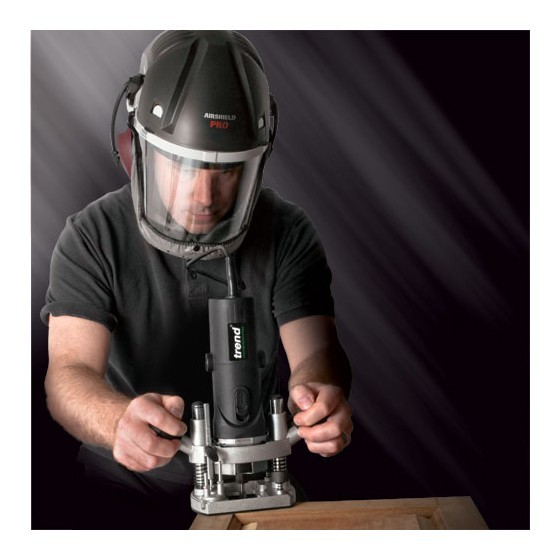 The Trend Professional Airshield provides protected powered respirator for use with all woodworking applications. Suitable for use when machining MDF.
