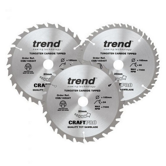 TREND CSB/165/3PK/C CRAFTPRO TCT SAW BLADE TRIPLE PACK
