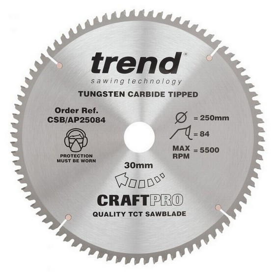 TREND CSB/AP25084 CRAFT SAW BLADE ALUMINIUM AND PLASTIC 250MM X 84 TEETH X 30MM
