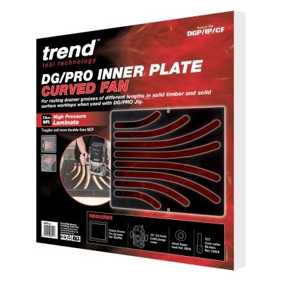 Trend accessory inner plate template for use with the Drainer Groove Pro jig. Create curved fan drainer grooves in solid timber and solid surface worktops.