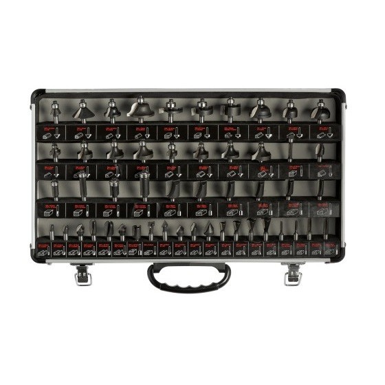 The Trend SET/SS50X1/4TC 50 Piece Cutter Starter Set includes twenty two guided, ten straights and eighteeen unguided router cutters.